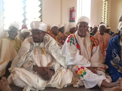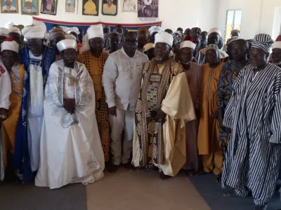 Le Ministre Conseiller, Rachidi GBADAMASSI en tournée nationale était ce Vendredi 19 Décembre 2025 à Nikki. À la faveur d'une séance tenue au palais impérial en présence de l'Empereur de Nikki, des rois de Banikora, de Kandi, de Sinendé, de Pèrèrè, de Kalalé, de Parakou et les autres membres de la cour impériale, Le Ministre Conseiller a expliqué à ces autorités traditionnellese le fil du déroulement du Coup d'Etat déjoué du Dimanche 07 Décembre 2025 et notifié que le Président de la République se porte bien. Cette initiative a été saluée par les autorités traditionnelles qui ont dit des prières à l'endroit du Chef de l'État, Patrice TALON et aux membres de son Gouvernement. Le Maire de Nikki présent à cette rencontre a salué cette démarche du Ministre Conseiller, Rachidi GBADAMASSI tout en rassurant le peuple béninois en général et celui de l'aire cultuelle Baatonou et Boo du contrôle de la situation par les Forces de la Défense et de la Sécurité.